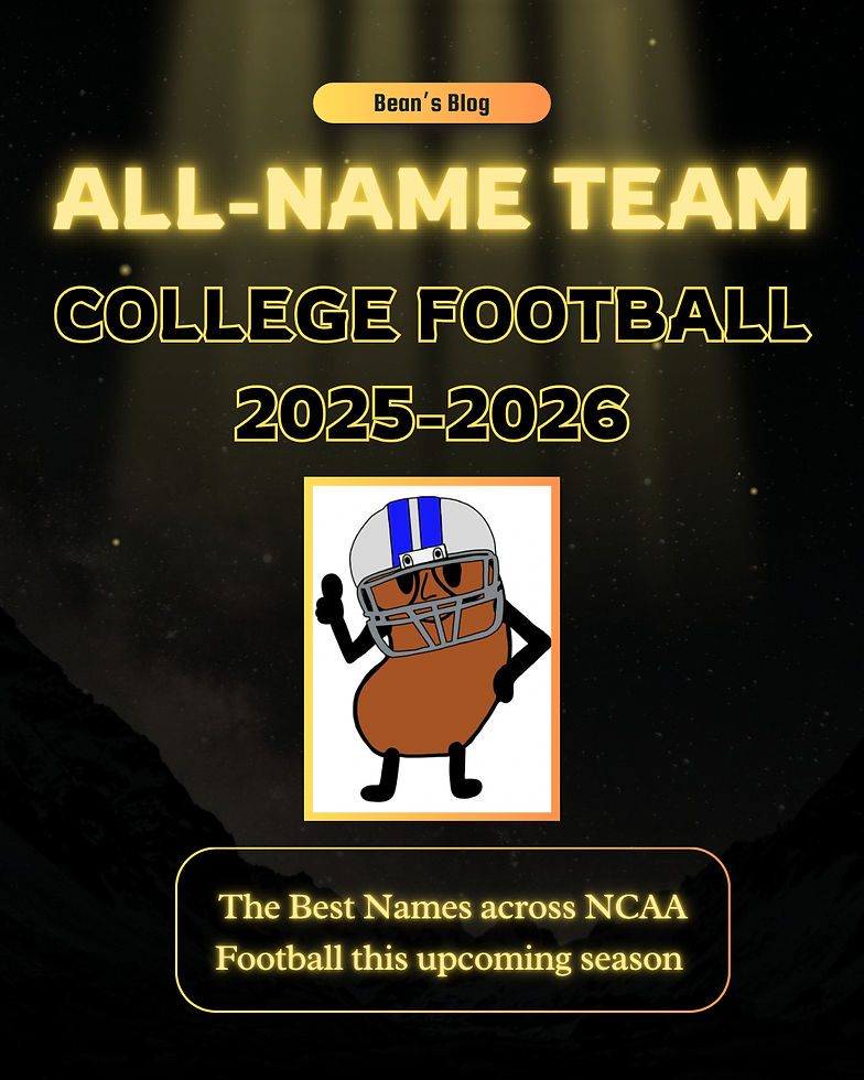In case you're not familiar with the concept, every year it seems to make the rounds on social media of the funniest, most unique, and most downright strange names in College Football. It happens across all sports I'm sure, but College Football and Basketball are always my favorites. So Today, we're putting together a the All-Name Roster for College Football 2025-2026.